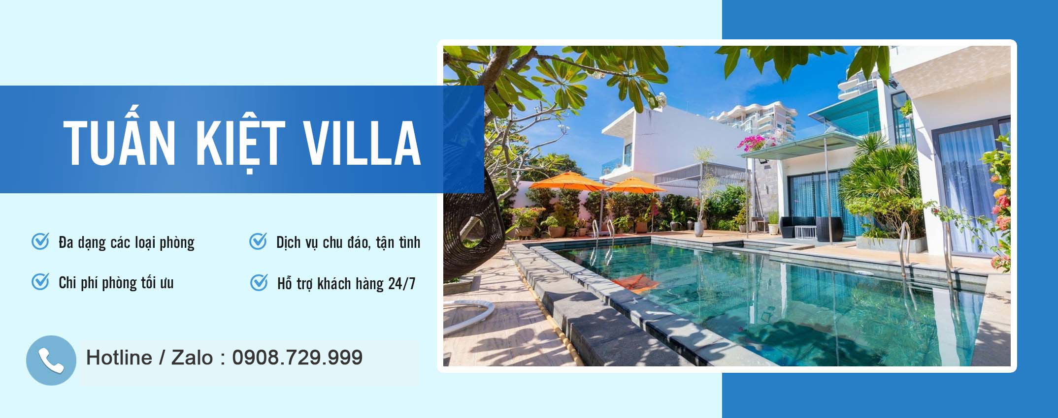 Tuấn Kiệt Villa là một trong những đơn vị đầu tiên ở Vũng Tàu có khả năng khai thác, thiết kế, quản lý mô hình nghỉ dưỡng, chăm sóc khách hàng chuyên nghiệp ngay tại chỗ nghỉ và nâng cấp sản phẩm liên tục, nhằm đem đến những trải nghiệm hoàn toàn mới mẻ và độc đáo mỗi khi bạn đi du lịch hay công tác. Mỗi khách được phục vụ tốt nhất với hệ thống hỗ trợ của chúng tôi. Khi đến nơi, Nhân viên của chúng tôi có sẵn 24/7